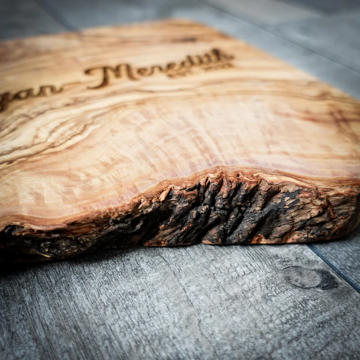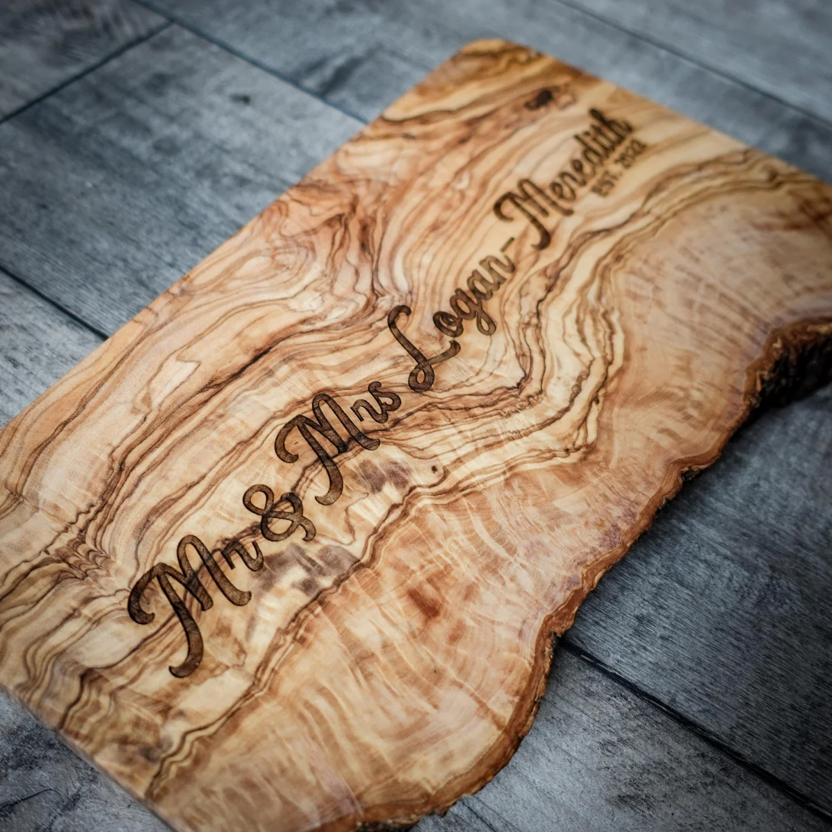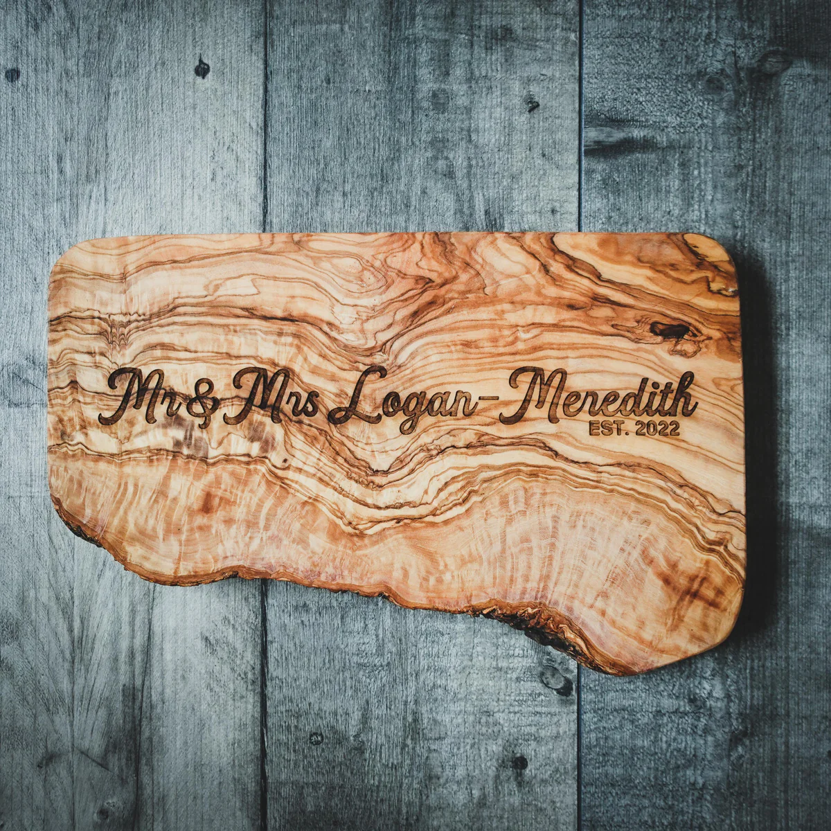 PERSONALISED OLIVE WOOD CHOPPING BOARD - Names & Year